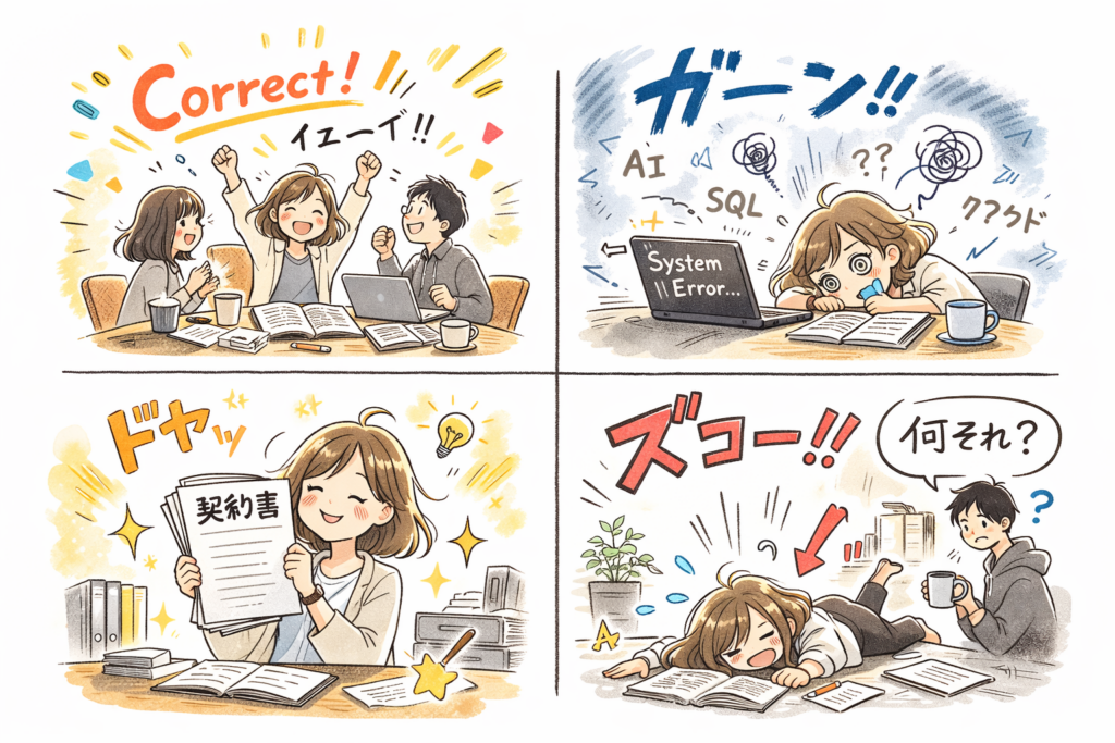 「ITパスポートって、契約や法関連の内容も含まれるんだ」というのが驚きでした。