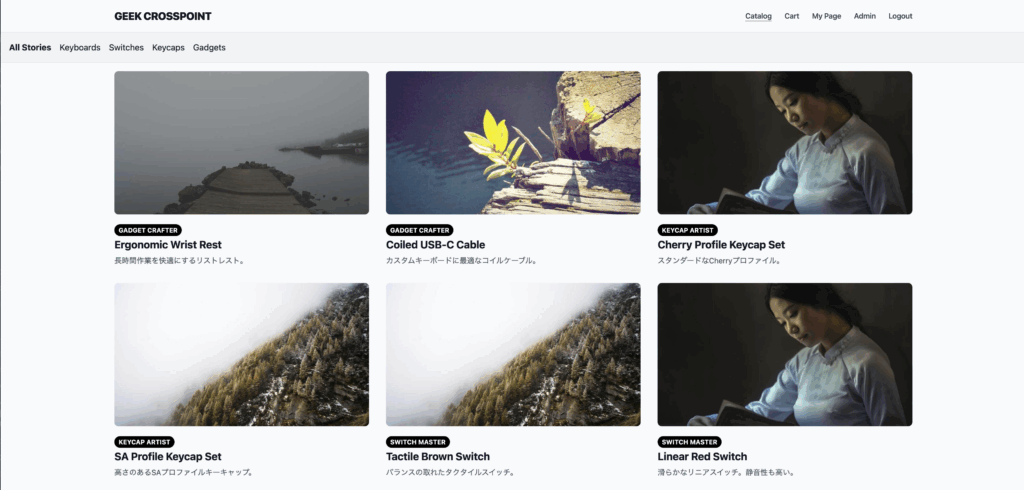 マイクロサービス構成のECサイト(ユーザー管理、商品カタログ、カート機能など)